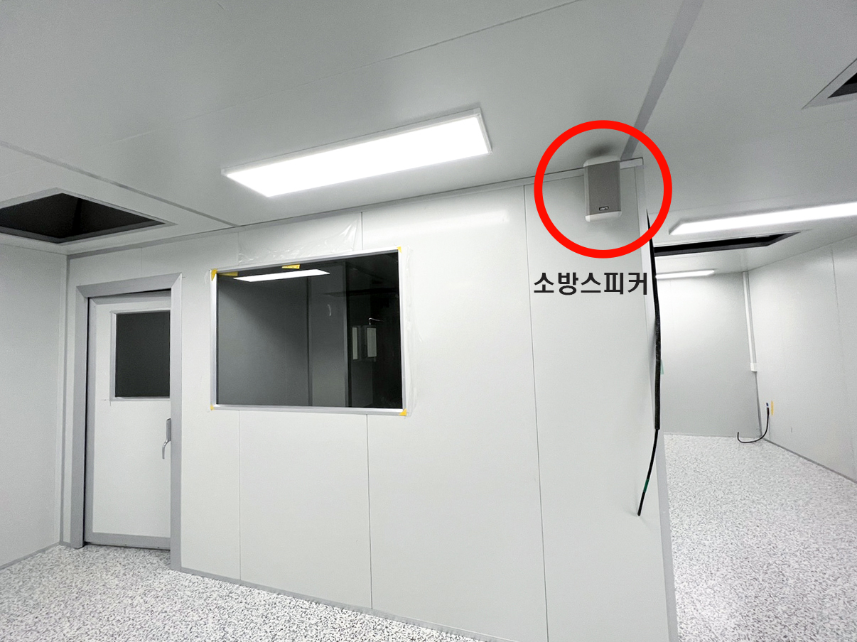비상구 표시등과 소방 스피커 설치를 완료한 모습입니다.